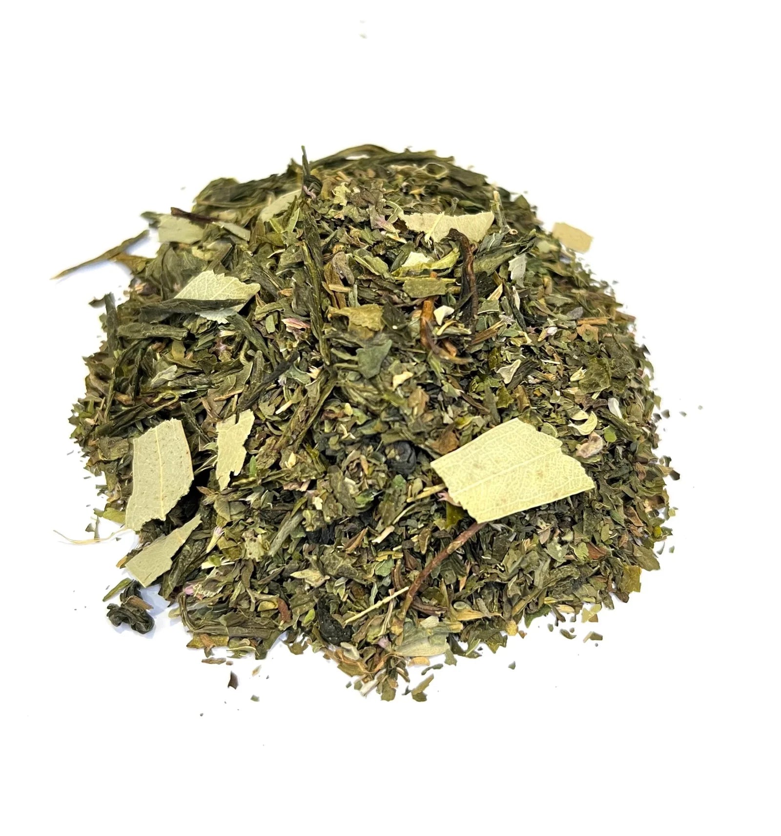 Refresca tus sentidos con el Té Verde Polar Mint, una mezcla de té verde Sencha, menta, poleo y eucalipto que brinda una experiencia revitalizante y fresca.